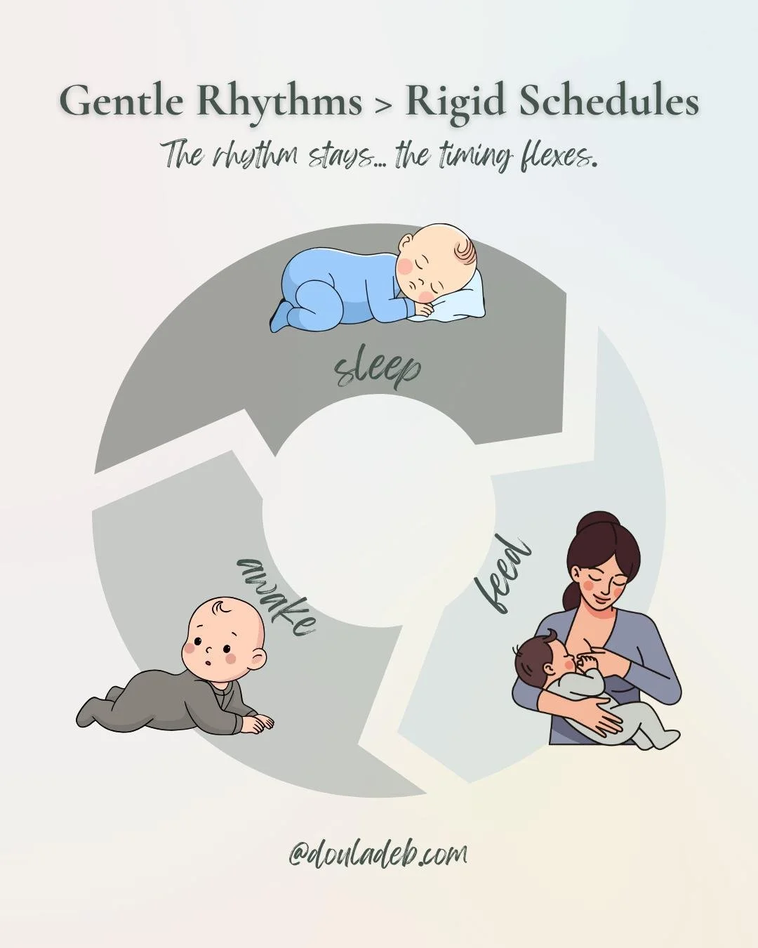You start to recognize your baby’s rhythm. You can roughly anticipate when feeds cluster, when sleep tends to happen, and how evenings usually unfold. It’s not perfect, but it feels familiar enough to breathe a little.